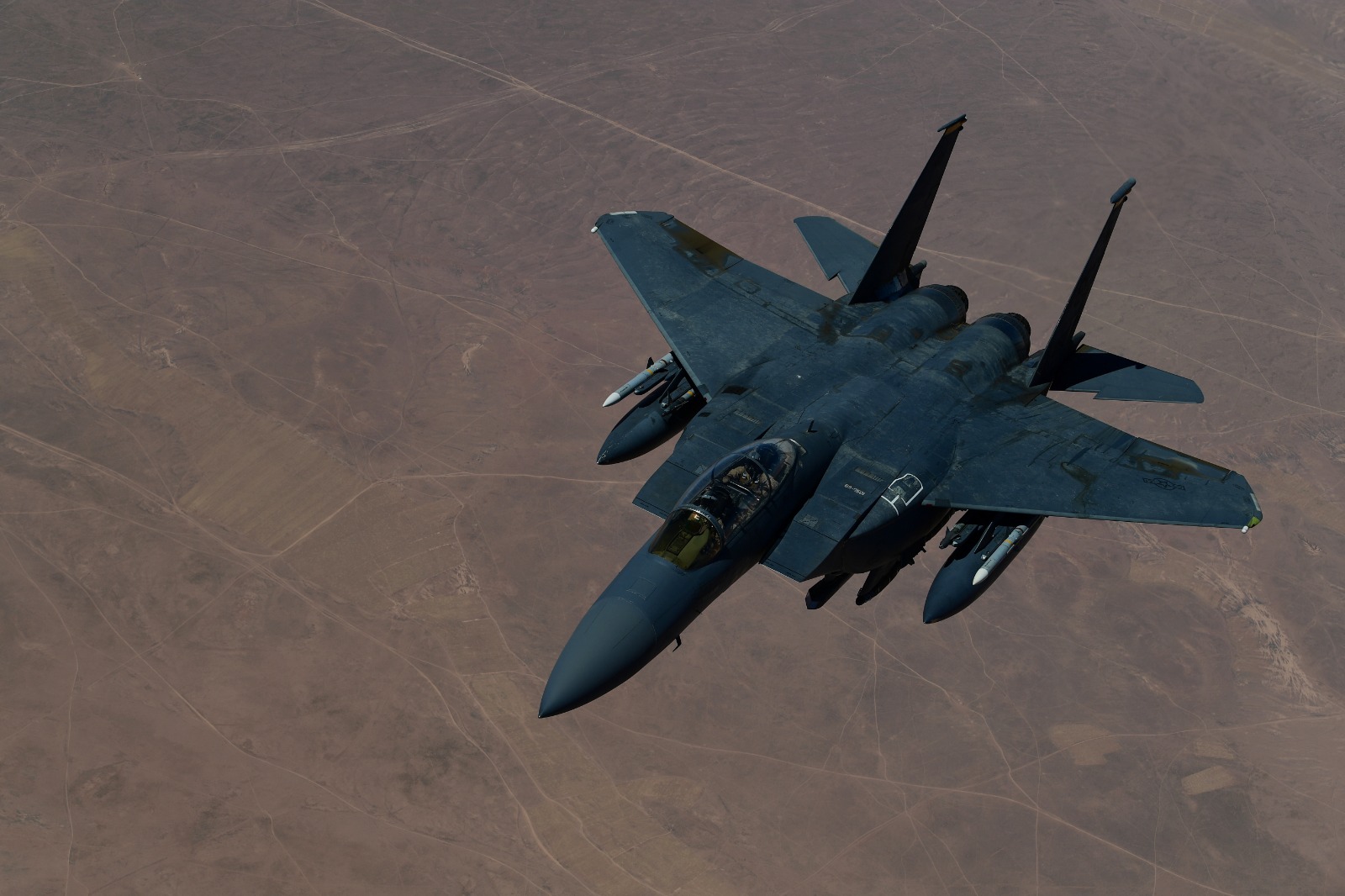 <p class="rteright">9 اگست 2019 کو امریکی فضائیہ کی جانب سے جاری کی گئی اس تصویر میں ایف 15 ای طیارہ خلیج میں نامعلوم مقام پر پرواز کر رہا ہے (روئٹرز)</p>