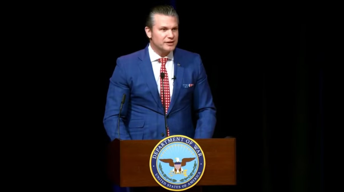 <p class="rteright">امریکی وزیر جنگ پیٹ ہیگسیتھ 15 اپریل 2026 کو پینٹاگون میں عبادت کی ایک تقریب کے دوران خطاب کرتے ہوئے (امریکی محکمہ جنگ)</p>